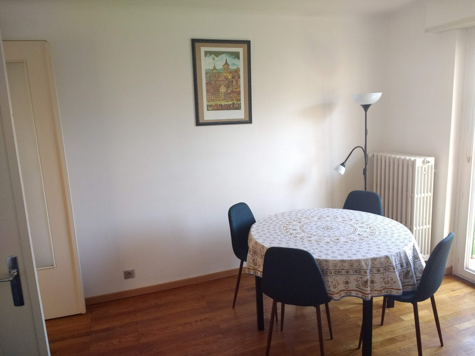 Colmar, Quartier Sud Appartement 2 pièces de 45 m² à LOUER meublé situé au 3ème et dernier étage dans un immeuble AVEC ascenseur dans une résidence sécurisée et calme. L'appartement est tès lumineux avec une exposition Sud et se compose d'une entrée, un salon/séjour avec balcon, une cuisine équipée avec balcon, une grande chambre avec un lit double, une salle d'eau et un WC indépendant. Le bien est loué avec une cave. Les petits plus: une connexion fibre optique; un jardin commun à disposition et un local à vélos; la cosomation d'eau froide/chaude, le chauffage et les charges de copropriété locatives sont d'un montant de 175 € / mois en Provision pour charges. Disponible de suite!