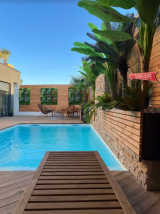 A Ingersheim, Maison individuelle haut de gamme à toît plat de 147 m² habitable avec garage et piscine située à l'entrée de Colmar sur la commune d'INGERSHEIM. Composée d'un salon séjour lumineux donnant accès à une grande terrasse avec piscine extérieure et un pool house, une cuisine équipée indépendante, une chambre parentale avec une salle d'eau attenante et un cabinet de toilette indépendant. A l'étage: 3 chambres dont une avec une terrasse privative, une salle de bain avec douche et baignoire. Idéalement située à proximité de toutes commodités et le vignoble. La maison offre de belles préstations: volets et porte de garage motorisés, un cellier, plancher chauffant et piscine.